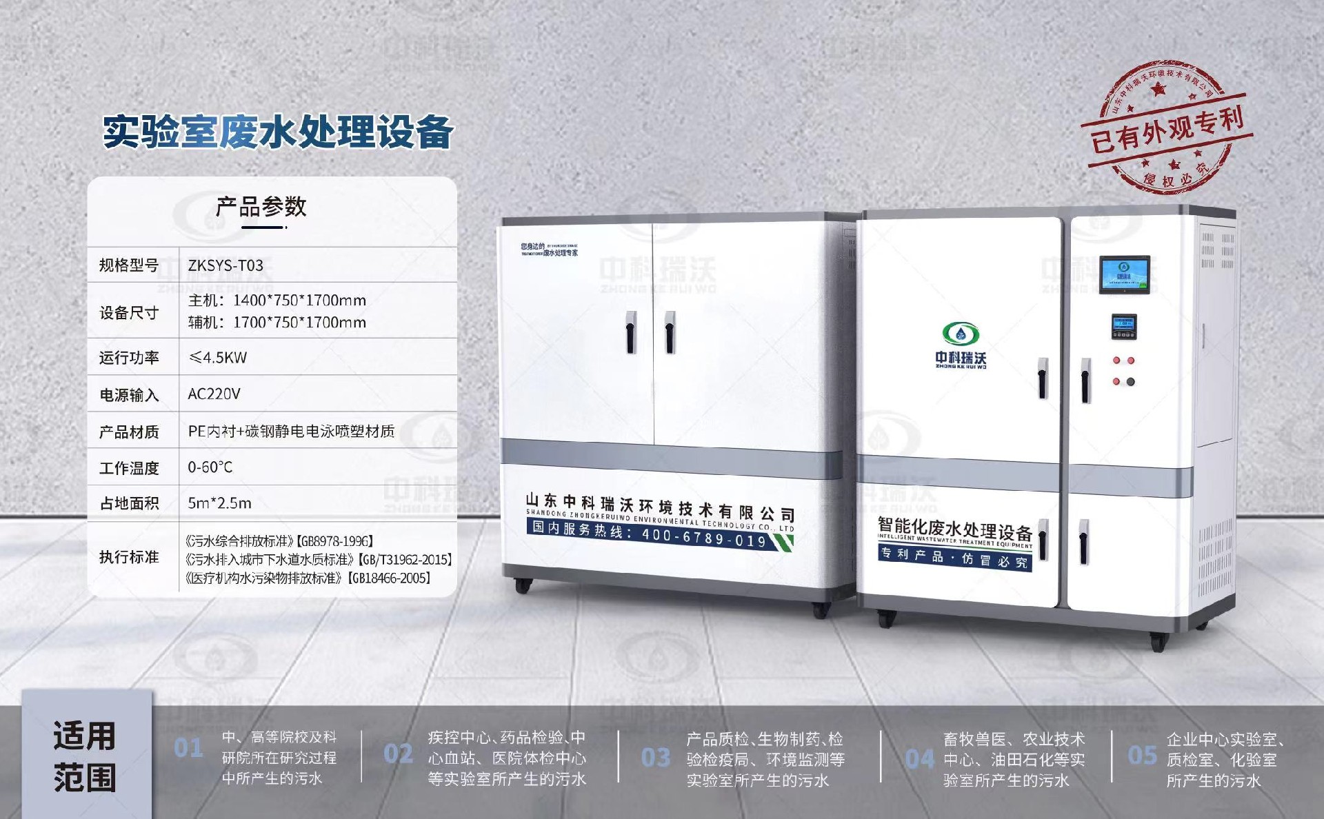 該設(shè)備被廣泛應(yīng)用于中、高院校、科研院所、醫(yī)療機(jī)構(gòu)、生物制藥、疾控中心、環(huán)監(jiān)、產(chǎn)品質(zhì)檢、檢疫檢驗(yàn)、藥品檢驗(yàn)、血站、畜牧、P1、石油化工、企業(yè)等實(shí)驗(yàn)室、化驗(yàn)室的有機(jī)類廢水處理,憑借穩(wěn)定性能,優(yōu)質(zhì)處理結(jié)果,受到廣大客戶的一直好評。